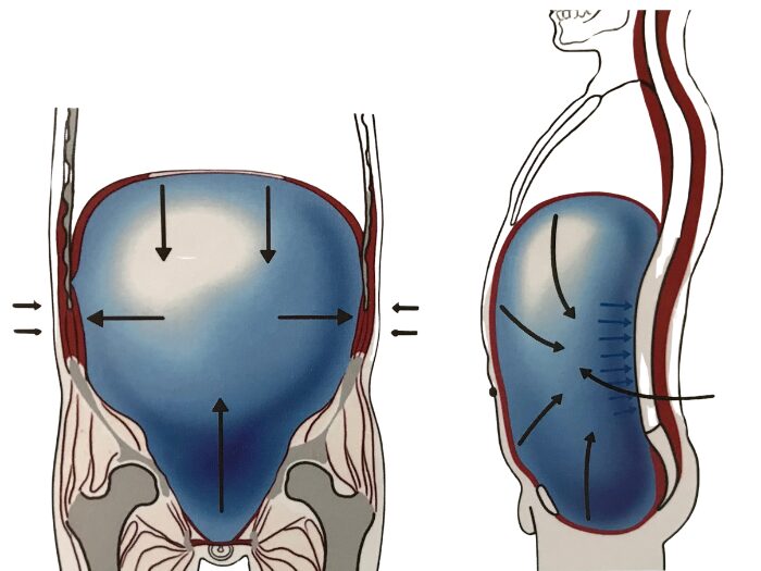 横隔膜が適切な位置にあり、呼吸が腹腔(お腹の空間)の動的安定に寄与して初めて、身体は「固めずとも安定する」状態になります。